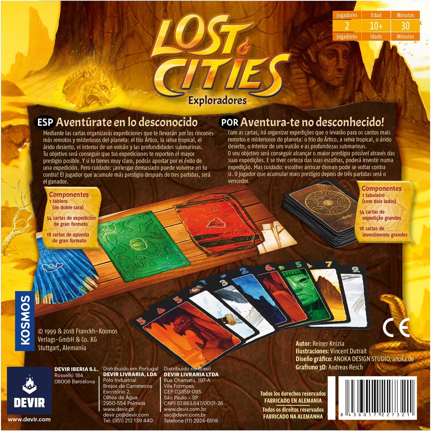 - Ciudades Perdidas (Exploradores) es un juego de 1999, una de las más célebres creaciones del prolífico doctor Reiner Knizia (El Señor de los Anillos, Grande, My City), y esta vez viene acompañado del arte de uno de los más grandes ilustradores contemporáneos de juegos de mesa, Vincent Dutrait (Museo, Holi ).