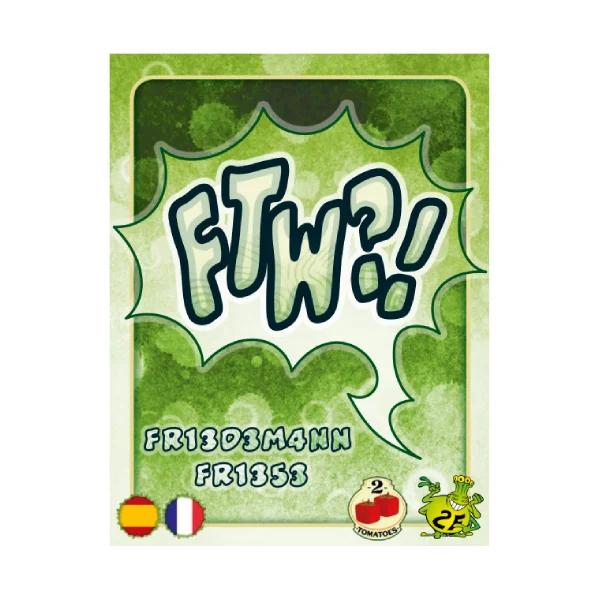 - “FTW?!” es un juego de cartas estratégico diseñado por Friedemann Friese, donde el objetivo es deshacerse de la mayoría de las cartas y quedarse con la carta de mayor valor posible, ya que los puntos bajos determinan al ganador. Es un juego simple y rápido, ideal para 2 a 6 jugadores, que suele durar unos 25 minutos.